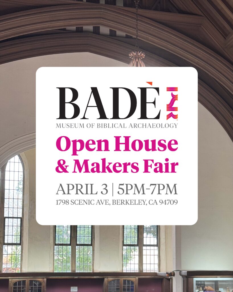 Join us for a special Badè Museum Open House & Makers Fair celebrating the centenary of the archaeological excavations at Tell en-Nasbeh.
